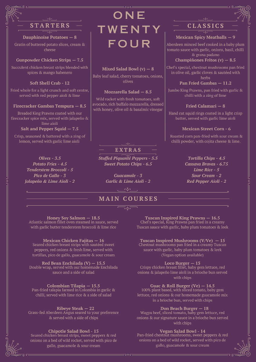 What sets One Twenty Four apart is the consistent quality, thoughtful plating, and an inviting ambience that suits both casual diners and special occasions. The menu is compact yet varied, making it easy to navigate and ideal for both quick meals and leisurely dinners. Overall, the One Twenty Four Menu is a well-rounded culinary experience in Tooting, with something for every palate.